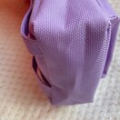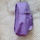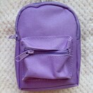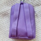 ミニリュック型の紫のポーチ、フロントポケット付きで便利。