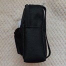 ミニリュック型のブラックのポーチ、フロントポケット付きで便利。