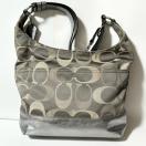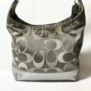 COACH コーチ シグネチャー ショルダーバッグ F17678 サテン レザー グレー シルバー