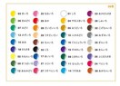 セット内容:きいろ、きみどり、みどり、みずいろ、あお、むらさき、ももいろ、あか、だいだいいろ、うすだいだい、ちゃいろ、くろ、しろ、やまぶきいろ、おうどいろ、ふかみどり、ぐんじょういろ、すみれいろ、あかむらさき、しゅいろ、こげちゃいろ、ねずみいろ、ぎんいろ、きんいろ、れもんいろ、ときわいろ、まつばいろ、なんどいろ、あおみどり、うすあお、あいいろ、ふじむらさき、ふじいろ、べにいろ、うすべにいろ、あかちゃいろ