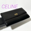 美品 CELINE セリーヌ レザー 三つ折り がま口 長財布 メンズ レディース ブラック
