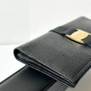 美品 Salvatore Ferragamo フェラガモ ヴァラ リザード型押し レザー 二つ折り 長財布 ブラック