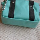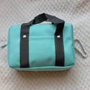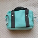 スクールバッグ型、カラビナ付きのミントグリーンのスクールバッグ ミニトートバッグ風ポーチ