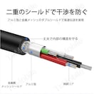 二重のシールドで干渉を防ぐ、アルミ箔と金属メッシュのダブルシールド,太いコアで高速伝送を実現。