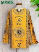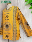 アジアンな柄(オーム、紋様、仏陀跡、ヒンディ語、植物柄など)の長袖クルタです。