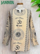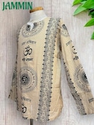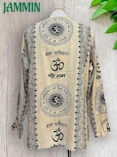アジアンな柄(オーム、紋様、仏陀跡、ヒンディ語、植物柄など)の長袖クルタです。