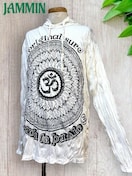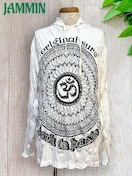 アジアン/エスニック/サイケ/ヒッピー/個性派/ロンT/長袖/Tシャツ/ロングスリーブTシャツ/フード付き/長袖/Lサイズ/オーム/オム/OM/魔除け/お守り/宇宙/ヨガ/締切日時