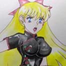 • 自作イラスト・送料込・セーラームーン・セーラーヴィーナス・愛野美奈子・黒スーツ・キック・A4サイズ