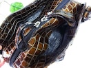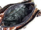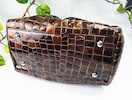 コッコフィオーレのハンドバッグです。光の当たり方で表情を変える、エナメル加工が施された型押しレザーのパッチワークデザインが特徴です。Dブラウンを基調としながらも、モザイク状に配されており、見る角度や光の加減によって様々な表情を見せます。全体的につやつやで煌びやかな印象です。コッコフィオーレの華やかなハンドバッグです 素材には、エナメル加工が施されたクロコ型押しレザー(牛革)が使用されており、非常に上品な光沢と高級感があります。 光の当たり方で表情を変えるパッチワークデザインが特徴です 「コッコペルラ」といわれるエナメル加工した牛革クロコ型押しが特徴的な革製品