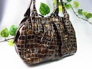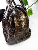 【正規品・美品】COCCO FIORE コッコフィオーレ クロコ型押しレザー エナメル加工 ハンドバッグ(Dブラウン/パッチワークデザイン)