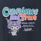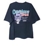Sanrio(サンリオ)の人気キャラクター、クロミがヘッドホンをして手書き風のロゴといっしょにバックプリントされたTシャツ。左胸には名前ロゴがプリントされ、アイテム。