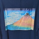 ワイシャツメーカー山喜株式会社の浮雲から葛飾北斎の浮世絵「富嶽三十六景 凱風快晴」がバックプリントされたTシャツ。誰もがみたことのある富士の絵が転写プリントで、コレクションしたくなるアイテム。