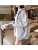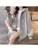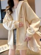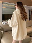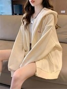 レディース オーバーサイズ 韓国ファッション フード付きスウェットシャツ - 軽量 フルジップ 長袖 パーカー, ベージュ/ホワイト/ブラック/ネイビーブルー, プレッピー カジュアル ルーズフィット セーター レイヤリング用, 春/秋 カジュアルウェア, 韓国スタイル レイヤードアウトフィット, 無地 ラウンドネックデザイン, 快適なリラックスフィット, 秋と春の季節に最適, シックで多用途 カジュアルまたはフォーマルな服装に