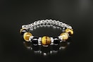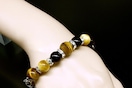 勝負運・仕事運に強い虎目石と金財運・繁栄富貴に強いゴールデンタイガーアイ、護符・意思堅固のオニキスを使った力強いブレスレット。