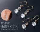 ダイヤのような輝きキュービックジルコニアが揺れて煌くK14GF「金張りピアス」