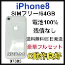 動作良好 100% iPhone 8 64 GB SIMフリー シルバー 本体