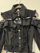 フリルやリボン、ボタン装飾がクラシカルで華やか。ブラックカラーで細見え効果もあり、ライブ参戦服やイベント、コスプレ衣装としても最適です。