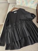 larina/カットソー★プリーツギャザーのブラックカットソー