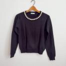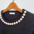 襟部分にグルリと大きなパールをあしらったニットプルオーバー
