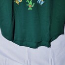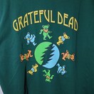 ジェリー・ガルシアが率いていたアメリカ合衆国を代表する伝説的ロックバンド『Grateful Dead(グレイトフル・デッド)』のマスコットキャラクター、Dancing Bear(ダンシング・ベア)がイナズマサークルのマークの周りに踊っている姿がフロントにプリントされたTシャツ。首裏にはダンシング・ベアの顔がプリントされ、サイケデリックな色合いや後ろ裾が長いテールカットがファンにはたまらないアイテム。