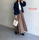 上半身は細リブニット、女性らしい華奢な印象を与えてくれます。