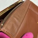 レザーは柔らかく繊細なところが高級感を演出していて、がま口のゴールド金具も品を際立たせるポイント。各種収納性も実用的。大人の方はもちろん、ご年配の方にも是非お勧めしたいヴィンテージアイテムの一品。