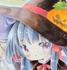 ハガキサイズのカスタムペーパーにコピックと色鉛筆を使用して描いてあります。