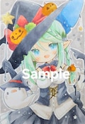 ハガキサイズのカスタムペーパーにコピックと色鉛筆を使用して描いてあります。