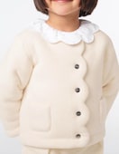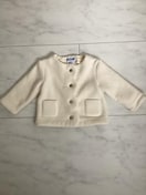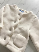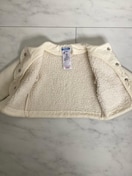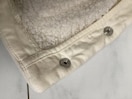袖に僅かにシミ?のような箇所有り、ボタン内側に少し毛羽立ち有り