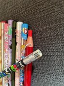 パッと見シュガーキュートガールズのキラキラえんぴつと中央のキラキラのシャインえんぴつ下剥がれ傷。元々かは不明