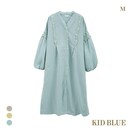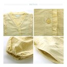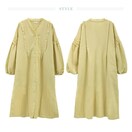 パフスリーブやフリルデザインが可愛らしいナイティです。ネックラインから前立てに施したピコフリルに加え、フロントや袖にも2種類の布を重ねたフリルをあしらい、ナチュラルな中にも華やかさをプラス。