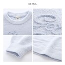 ふんわりした風合いの絵柄に、ぷっくり立体的なロゴがアクセントを添えています。
