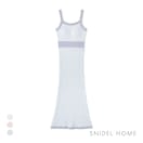 ハイウエストで切り替えた、カップイン仕様のエレガントなワンピース。ストラップやウエストの切り替えなど、配色のリブ部分にはステッチ風のラインを施してアクセントをつけました。ふっくらとした肌触りで、秋の始まりにちょうど良い素材感。同シリーズのカーディガン(B52SHNT254075)や雑貨と合わせて、上品なリラックスタイムをお楽しみください。