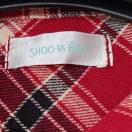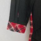 - 色: 赤と黒のチェック柄
