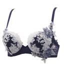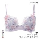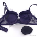 カップレースには繊細に輝くラメ糸を散りばめ、華やかなアップリケをふんだんにあしらった優雅で贅沢なデザイン。色とりどりに咲き誇るお花のモチーフとアップリケの重なりが、美しくロマンティック。透け感のある上品なアップリケを添えることで、高貴でエレガントな印象に。