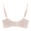 まるみのあるバストをつくる、バストに合わせやすい設計のクイーンサイズブラジャー。土台でしっかり支えて幅広ストラップと高めのサイドでキープ。