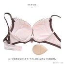 カップサイズに合わせた(※)ツーブロックパッドが効果的にバストボリュームをアップ。カップ前からカップ脇・ストラップへとつづくサポートパネルがバストを寄せて脇すっきり、深く美しい谷間を造形します。カップ面積が小さいので、フロントと谷間が解放され、軽やかなつけごこち。