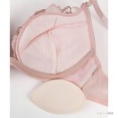 華奢な見た目ながら、脇流れを防ぐツノ有りカップでしっかりホールド。カップ脇は伸びない素材の裏打ちとサイドボーンが安定感を高め、谷間をキープします。カップ中心を広く開けた設計なので、Vネックなど胸元の開いた装いに相性抜群!