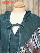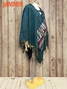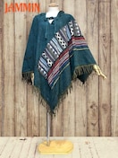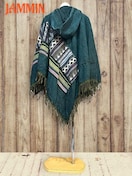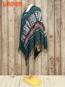 アジアンな織り柄生地を使ったフリンジポンチョです。