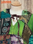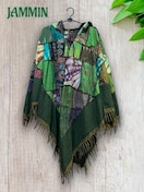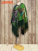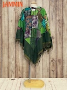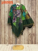 色々な柄生地(オーム、ヒンディ語、植物、タイダイ、モン族刺繍柄など)を使ったパッチワークフリンジポンチョです。