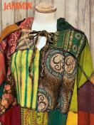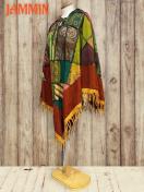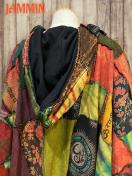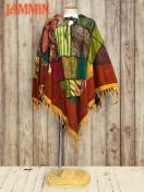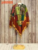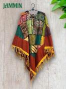 色々な柄生地(オーム、ヒンディ語、植物、タイダイ、モン族刺繍柄など)を使ったパッチワークフリンジポンチョです。