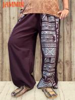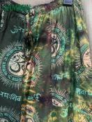 アジアンな柄(オーム紋様、ヒンディ語など)生地を使ったボリュームあるタイダイアラジンパンツです。