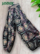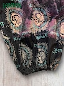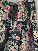 アジアンな柄(オーム紋様、ヒンディ語など)生地を使ったボリュームあるタイダイアラジンパンツです。