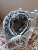 ★アクリル毛糸と、フェイクファーの糸で編んだ、スマホショルダーです。