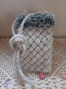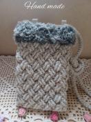 ★アクリル毛糸と、フェイクファーの糸で編んだ、スマホショルダーです。