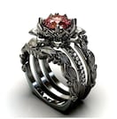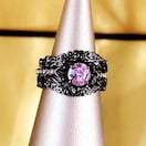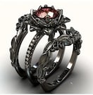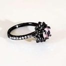 ★蓮花デザイン!真ん中にピンクのキュービックジルコニア(^O^)/。ブラックで渋くて可愛い!しかも3連リングなので、気分で変えても良いと思います!!