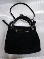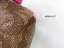 内部は綺麗です。外部は、四隅に擦れ箇所があります。前のバッグ口のピンクの縁に小さなシミ箇所があります。また、バッグ口とポケット縁のレザーに薄い擦れがあり、その他に多少の点のような跡があります。長期保管品です。