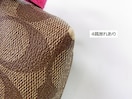 内部は綺麗です。外部は、四隅に擦れ箇所があります。前のバッグ口のピンクの縁に小さなシミ箇所があります。また、バッグ口とポケット縁のレザーに薄い擦れがあり、その他に多少の点のような跡があります。長期保管品です。