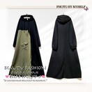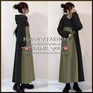 ┗ミリタリー風とブラックの切替が格好いいカジュアルパーカーロングワンピース