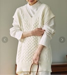 大き目シルエットと大ぶりなケーブルが特徴のニットベスト。